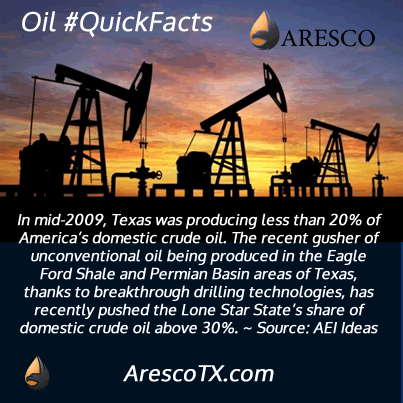 In mid-2009, Texas was producing less than 20% of America’s domestic crude oil. The recent gusher of unconventional oil being produced in the Eagle Ford Shale and Permian Basin areas of Texas, thanks to breakthrough drilling technologies, has recently pushed the Lone Star State’s share of domestic crude oil above 30%.
